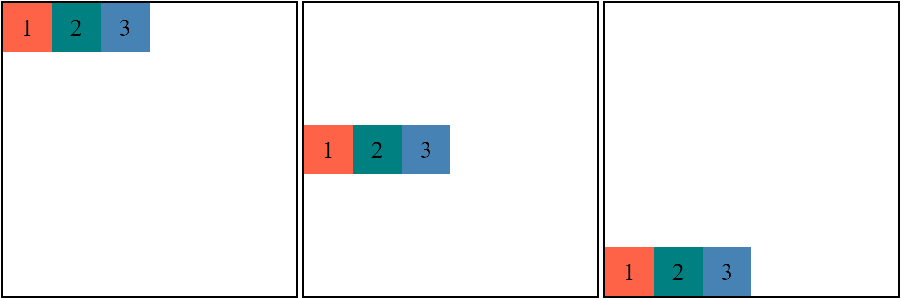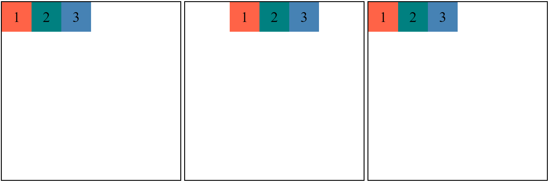 justify-content: flex-start / center / flex-end;