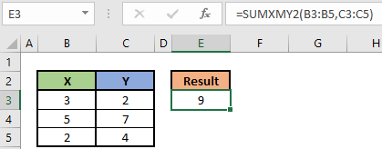 SUMXMY2 함수는 두 배열의 각각의 원소의 차를 제곱하여 더해주는 함수입니다.