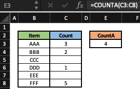 COUNTA(value1, [value2], ...)