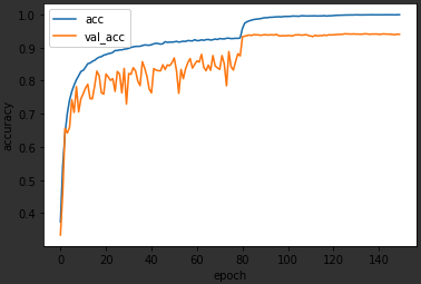 history = model.fit_generator(train_gen.flow(train_images, train_labels, batch_size=128), epochs=150, steps_per_epoch=train_images.shape[0] // 128, validation_data=test_gen.flow(test_images, test_labels, batch_size=128), validation_steps=test_images.shape[0] // 128, callbacks=[lr_scheduler])