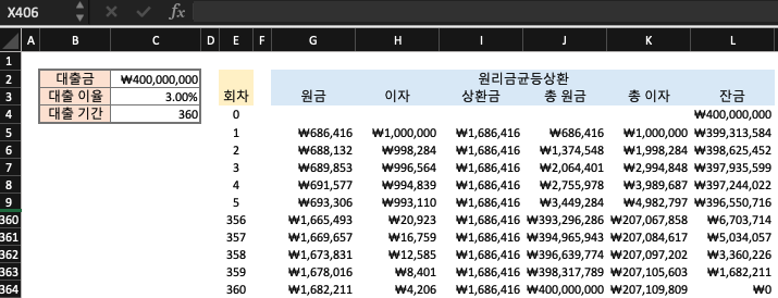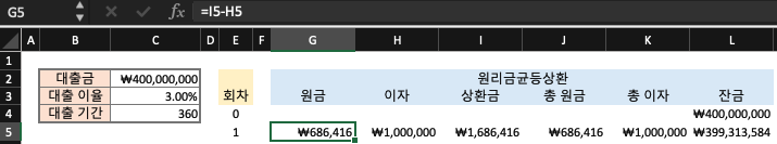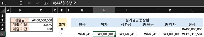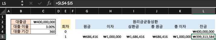 2020/12/01 - [Excel] - [Excel] 대출이자 계산 - 원금균등상환