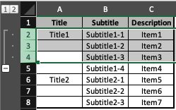스샷을 참고해서 그룹으로 만들기를 원하는 행을 선택합니다.