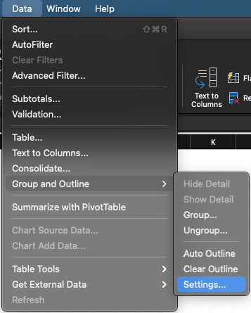 맥용 엑셀에서는 위와 같은 메뉴입니다.