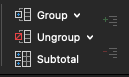 해제를 하려면 해제할 행들을 아꺼처럼 선택하고 ungroup 버튼을 눌러주면 됩니다.
