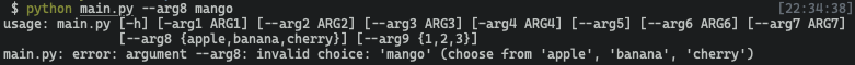 parser.add_argument('--arg8', choices=['apple', 'banana','cherry'])