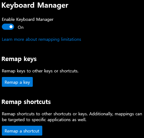 보통 윈도우에서 키보드의 레이아웃 변경이 필요하면 AutoHotKey나 SharpKeys 같은 툴을 쓰는데, 이 기능도 지원합니다.