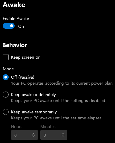 이 툴은 컴퓨터를 절전 모드로 넣지 않고 계속 켜둘 때 사용합니다.