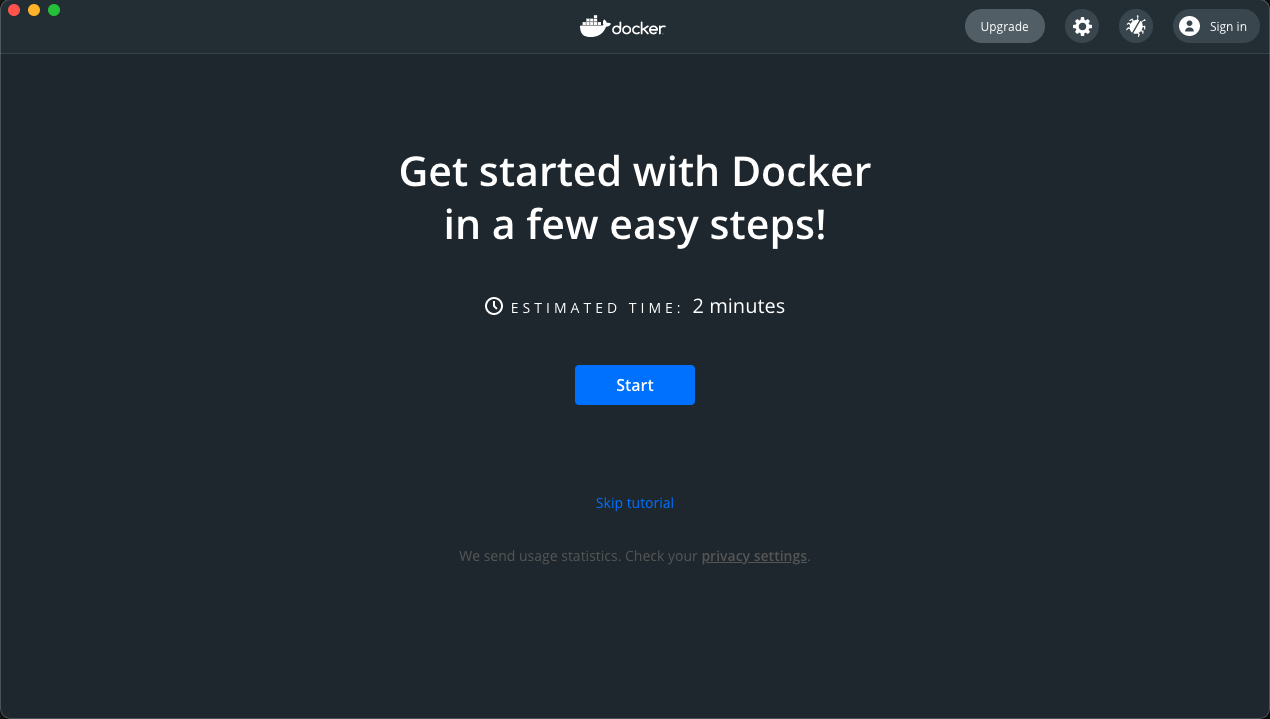 Then docker is automatically downloaded and you can see this screen.
