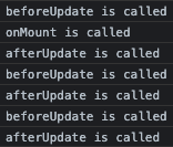 beforeUpdate(() => console.log('beforeUpdate is called'));