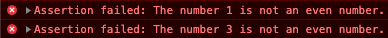 console.assert(i % 2 == 0, `The number ${i} is not an even number.`);