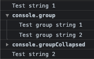 The console.group() and console.groupCollapsed() methods create a new inline group in the Web console.