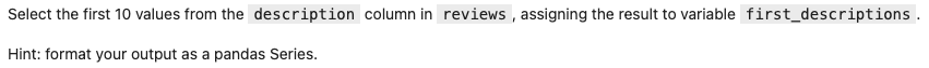 first_descriptions = reviews.loc[:9, "description"]