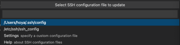 > Select SSH configuration file to update
