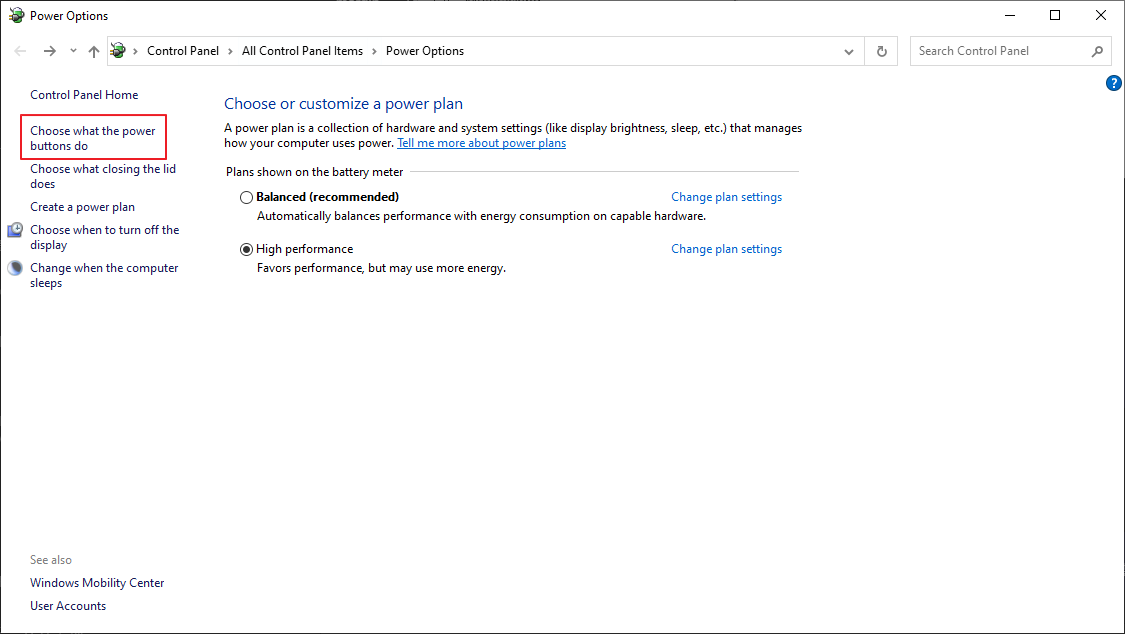 Choose what the power buttons do 메뉴를 선택하시고요.