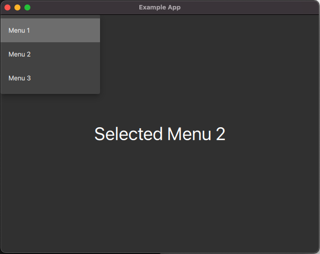 Menu에는 3개의 MenuItem을 놓고, 각각을 선택하면 Label의 글자를 변경하도록 했습니다.