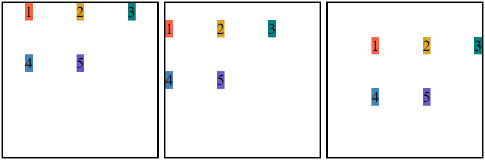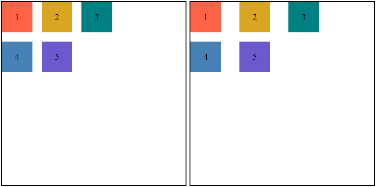 The example code has 3 column value so the result has 3 columns in a row, and the remaining box moves to the next row.