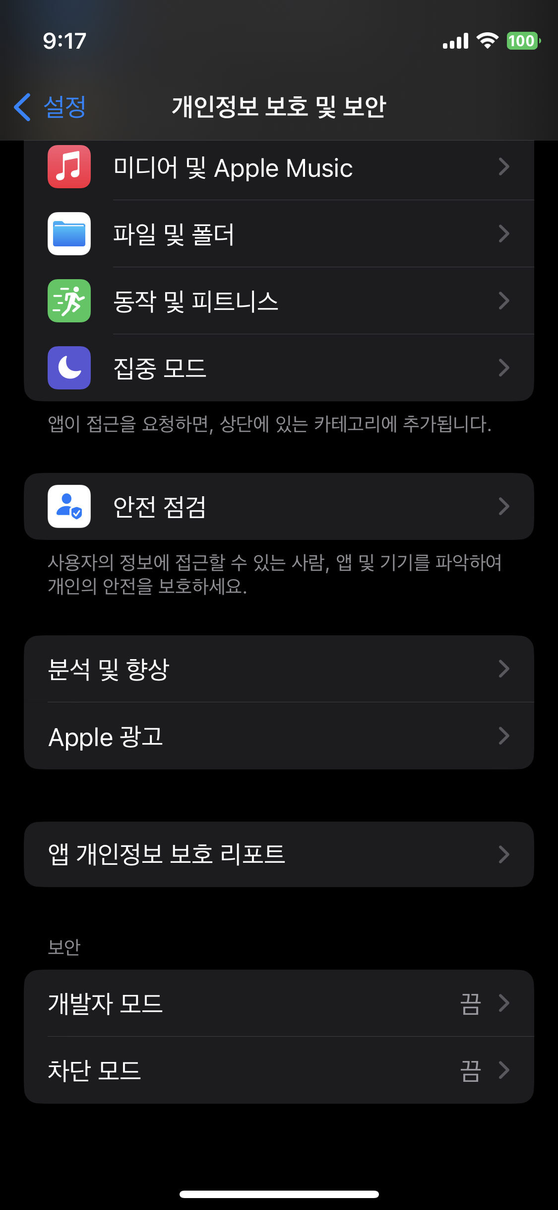 이제 아이폰의 개발자 모드를 활성화 해야합니다.