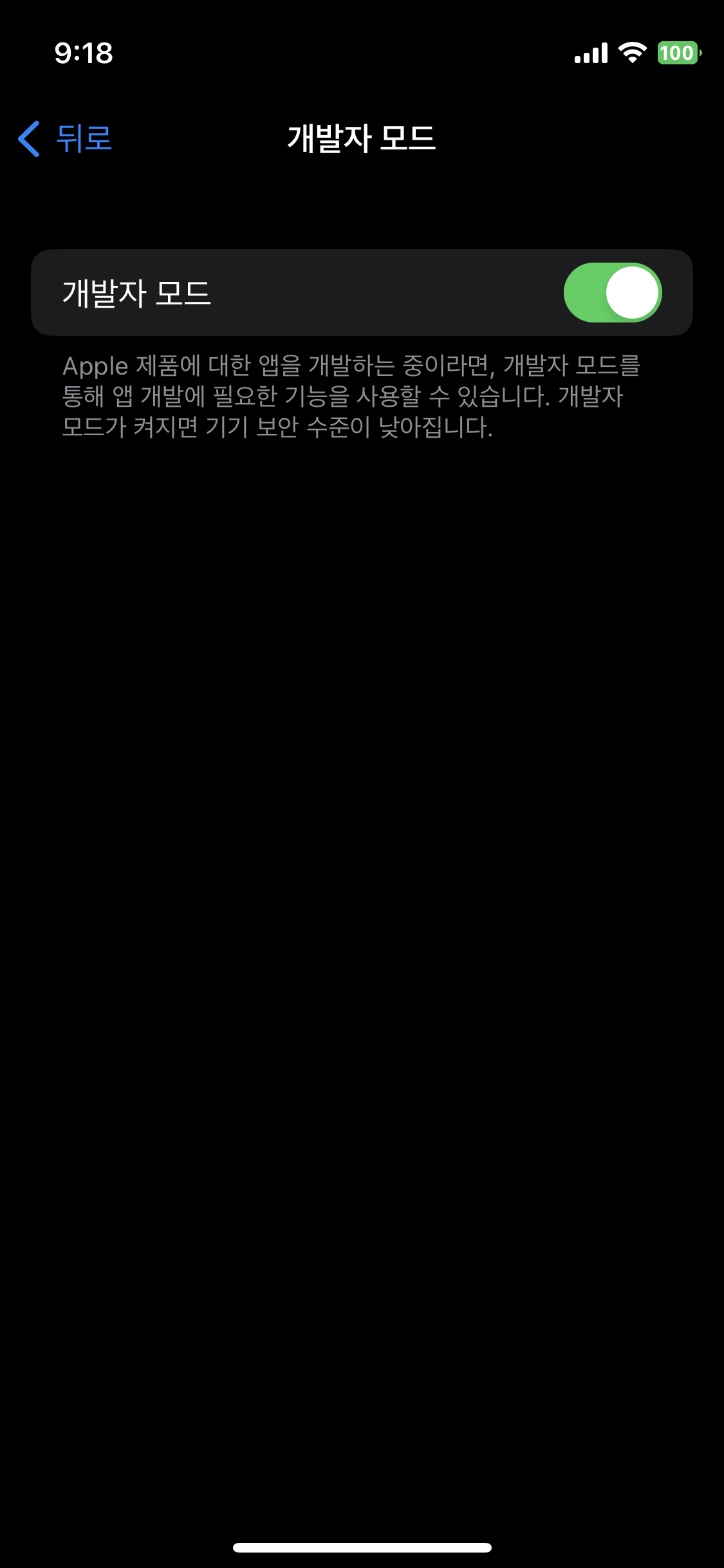 이제 아이폰의 개발자 모드를 활성화 해야합니다.
