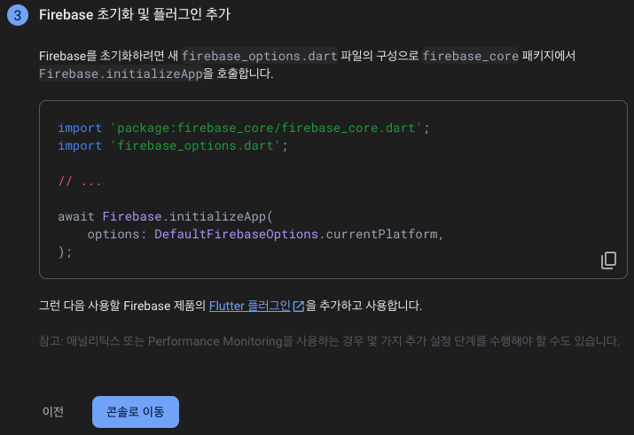 마지막으로 flutter application에 해당 내용을 적용해 줍니다.