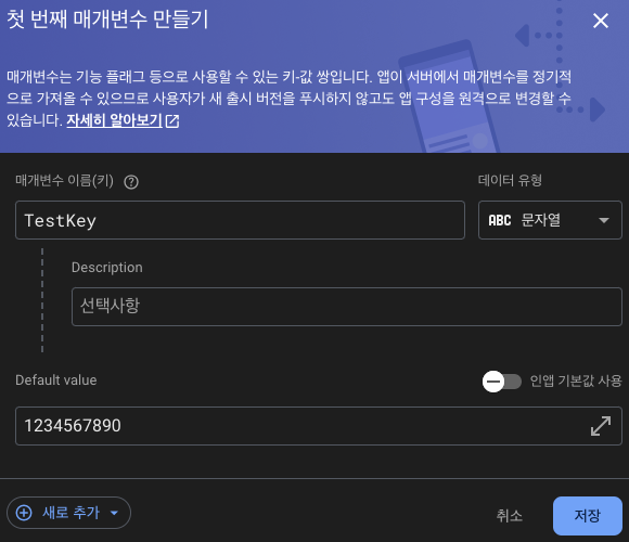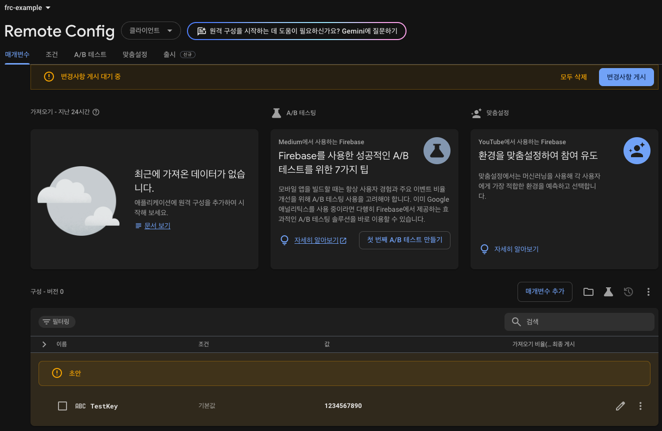 이제 다시 firebase로 가서 remote config를 추가해 주겠습니다.