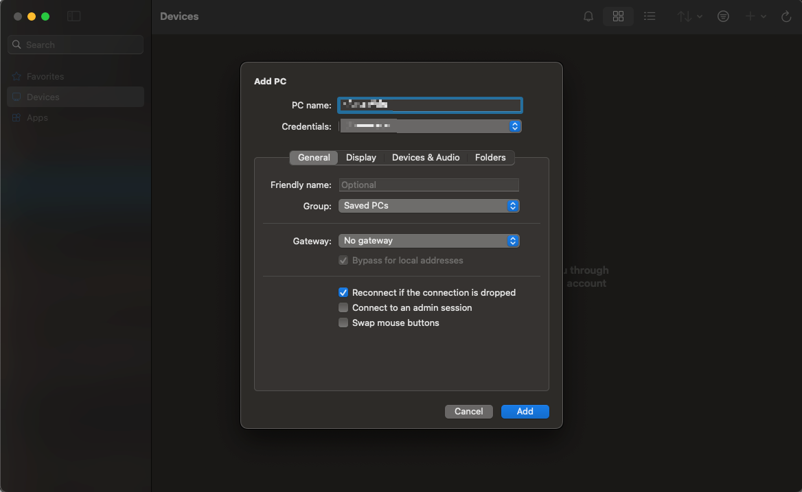화면을 참고하여 Devices에서 Add PC를 해 줍니다.