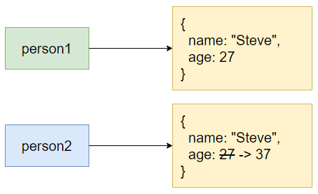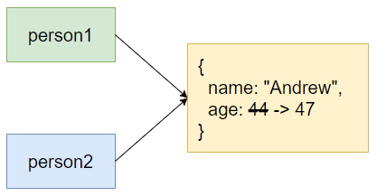 As you can see, I just change the age of person2, but the age of person1 is also changed.