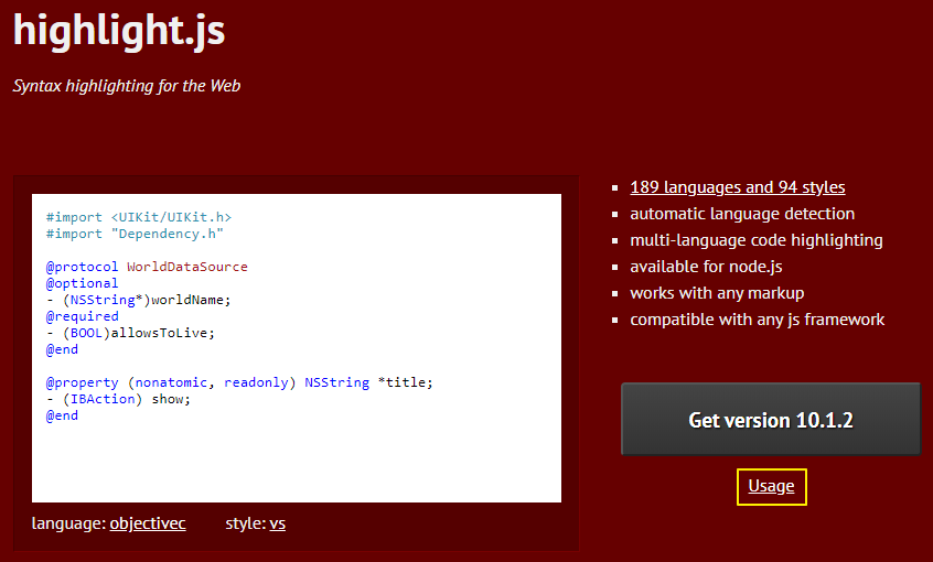 highlight.js의 홈페이지는 다음과 같습니다.