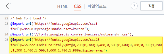 기존에 포함되었던 폰트 아래쪽으로 방금 받아온 폰트를 포함시킵니다.