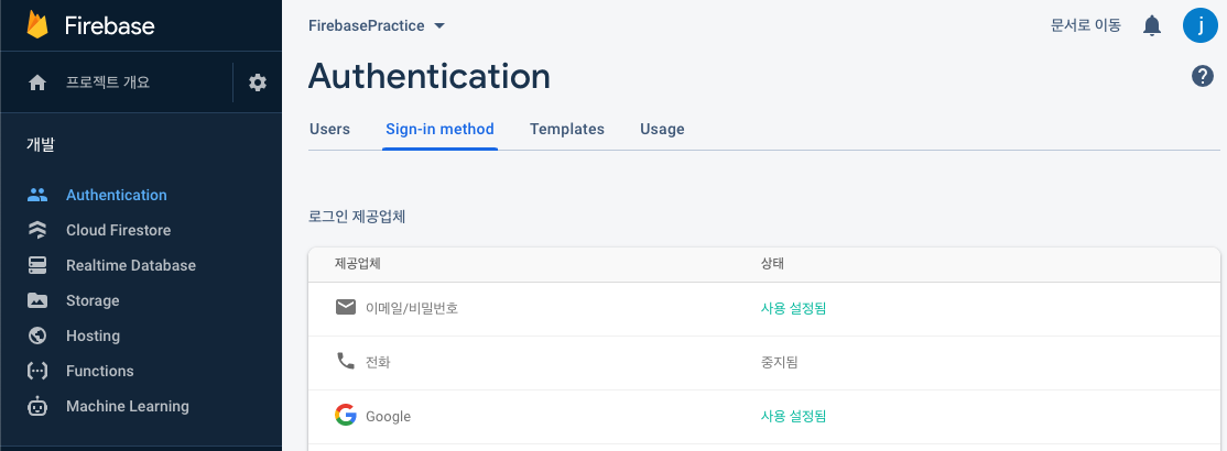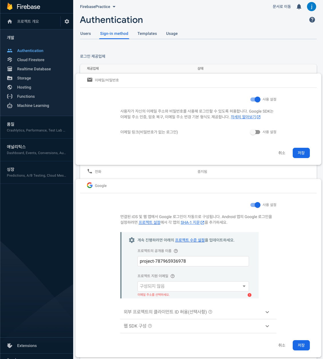 I chose the Email/Password and Google method. The other methods are similar to these.