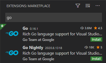If you search Go in the VSCode extension, you will see the two kinds of extensions.